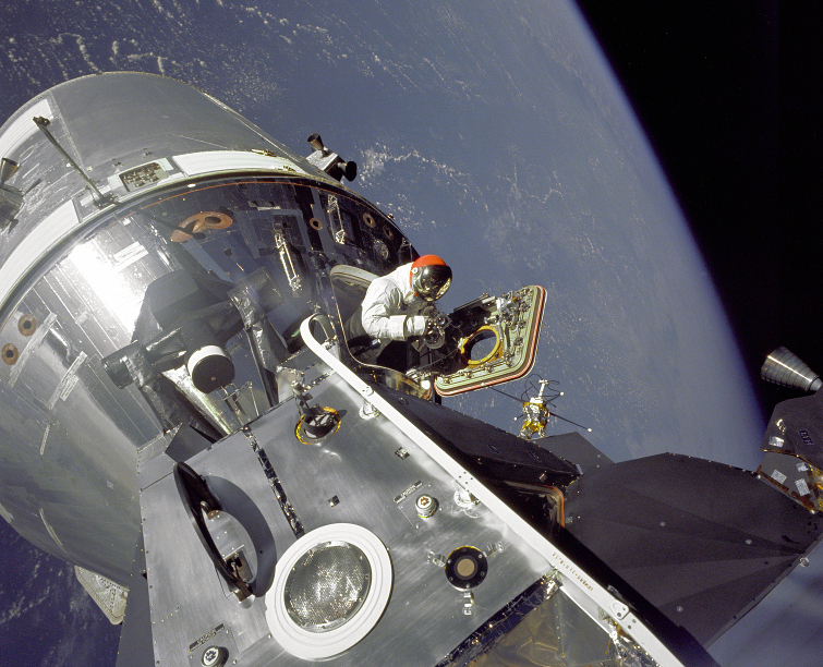 David Scott bei einem Außenbordeinsatz während Apollo 9 [NAS1969d]